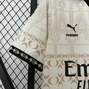Street style meets stadium pride in the striking AC Milan x PLEASURES Fourth Kit (2023/24) — an iconic fusion of football and fashion.