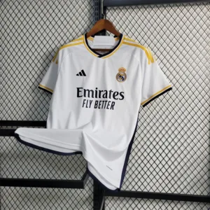 Show your support for Los Blancos with the official Real Madrid Home Jersey 2023-24 – Stadium Kit. Featuring timeless white with elegant golden accents, this kit reflects the club’s rich heritage and unmatched prestige. Whether you’re in the stands or out in the streets, wear your loyalty with pride.